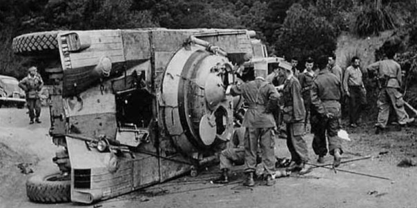 В 60-х в заморских департаментах Франции спокойнее не становилось, а с партизанами всех мастей бороться было нужно. «Панар» (а кто ж ещё) выкатил лёгкий двухосный броневик. Первый вариант был совсем «колониальным» — пулемёт и 60-мм миномёт в башне.