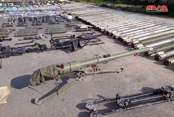 Корреспондент агентства САНА сообщил, что в провинции Дамаск компетентные органы обнаружили оставленные террористами боеприпасы, мины, различное оружие, а также ракеты израильского и американского производства.