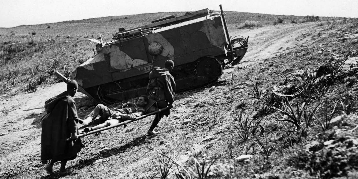 Всё, что могли противопоставить танкам горцы, — отряды с железными прутьями и факелами. Отважные танкоборцы должны были незаметно засунуть прут между ведущим колесом и гусеницей танка, а затем облить машину бензином и поджечь.