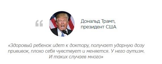 С Валентиной согласился бы и Дональд Трамп. В 2014, будучи частным лицом, шоуменом и бизнесменом, Трамп смело заигрывал с антипрививочными настроениями.