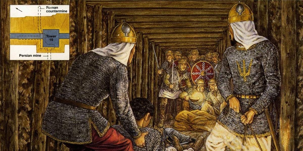 Персы сделали подкоп под башней № 19, но осаждённые подвели контрмину — встречный подкоп. В тесном пространстве подземного туннеля (шириной менее полутора метров и высотой около 1,7 метра) произошла ожесточённая схватка. После обрушения стенок тоннеля в братской могиле осталось около двадцати тел. Среди них — как минимум один персидский и несколько римских воинов, а также рабочие, которые вели подкоп. Тела лежали буквально грудой, в несколько слоёв.