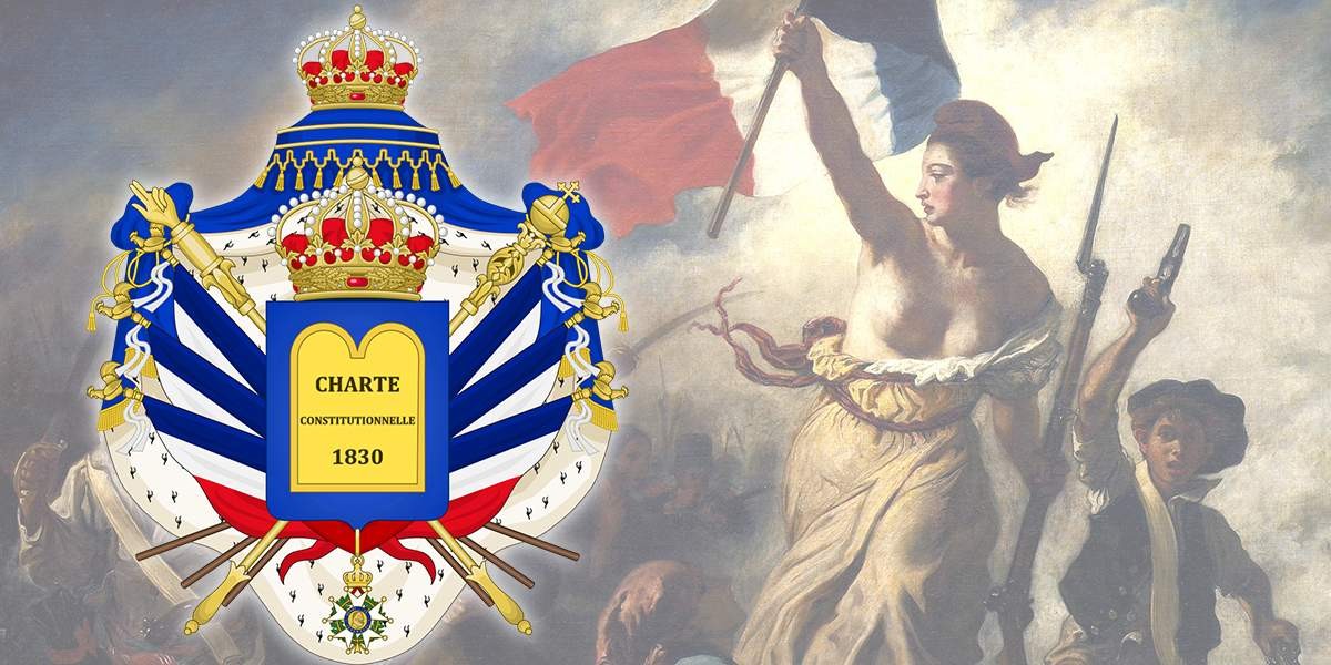 Он старался показать себя большим демократом и решил доказать это с помощью герба. Вместо лилий на синем щите появилась большая скрижаль с надписью «Конституционная хартия. 1830 год». По мысли короля, это обозначало, что теперь конституция стоит выше королевских лилий.