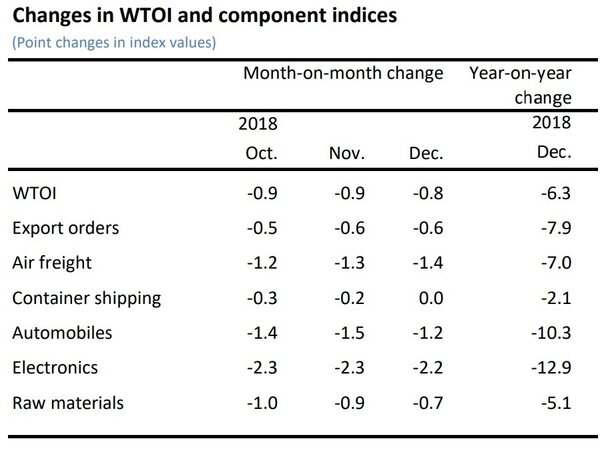 Индикатор ВТО о перспективах мировой торговли в 1 квартале 2019 года - 96,3 пункта. Это минимальное значение с марта 2010 года, то есть за 9 лет!