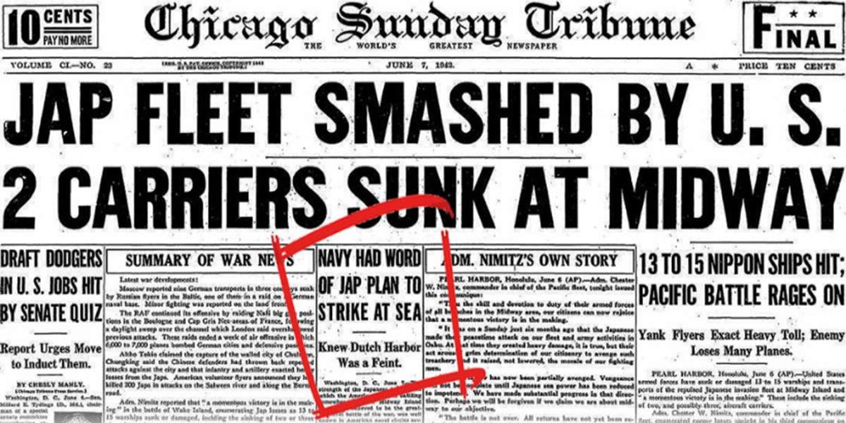 Седьмого июня 1942 года Америка праздновала свою первую победу в продолжавшейся уже более полугода войне — разгром японского авианосного соединения у атолла Мидуэй. Однако тем, кто обеспечил эту победу, было не до праздников. Причиной стала небольшая статья под броским названием «Флот знал план морского удара джапов», опубликованная одной из ведущих американских газет «Чикаго Трибьюн» и сразу же перепечатанная рядом других изданий.