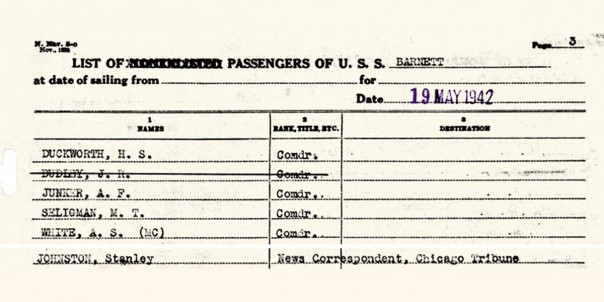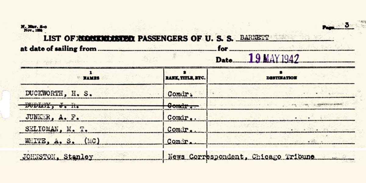Автором статьи оказался военный корреспондент «Чикаго Трибьюн» Стэнли Джонстон. Во время сражения в Коралловом море он находился на борту авианосца «Лексингтон», а после гибели корабля 8 мая 1942 года был подобран вместе с остальными выжившими членами экипажа и вместе с ними отправлен в Штаты на борту транспорта «Барнетт». После прибытия моряков фактически поместили в карантин, дабы не болтали лишнего. В то время как гражданский Джонстон спокойно уехал в свою редакцию.