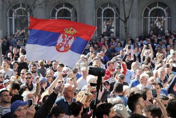 "Ожидаем, что президент выйдет и будет разговаривать с гражданами", — обратился один из лидеров протеста экс-глава МИД и бывший председатель Генассамблеи ООН Вук Еремич.