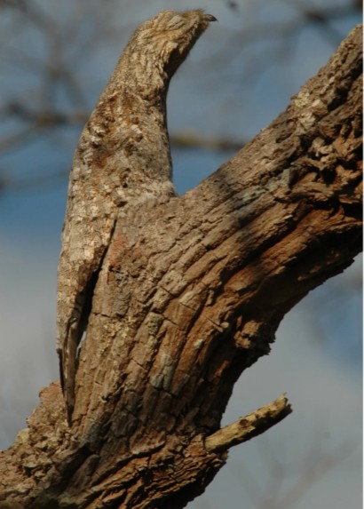 Это необычайно редкое в наблюдении существо. Но редкое не потому, что вымирает, а потому что его навыки маскировки совершеннее, чем слежка бабулек из подъезда за своими соседями. Окрас животного очень похож на местные породы деревьев, а его форма запросто может имитировать сломанную ветку. Данный пернатый абсолютно уверен в своей маскировке. В отличие от других птиц, козодой не будет ничего делать при приближении нежелательного объекта к месту его стоянки. В результате, птицу можно даже потрогать, но тут-то она уже психанет.