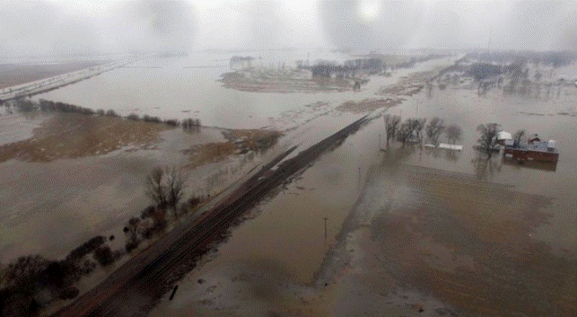 В США началось наводнение, которое уже называют катастрофическим для сельского хозяйства. Метеорологи считают, что оно угрожает 200 миллионам американцев и продлится еще не менее полутора месяцев, поскольку на севере страны продолжаются снегопады.