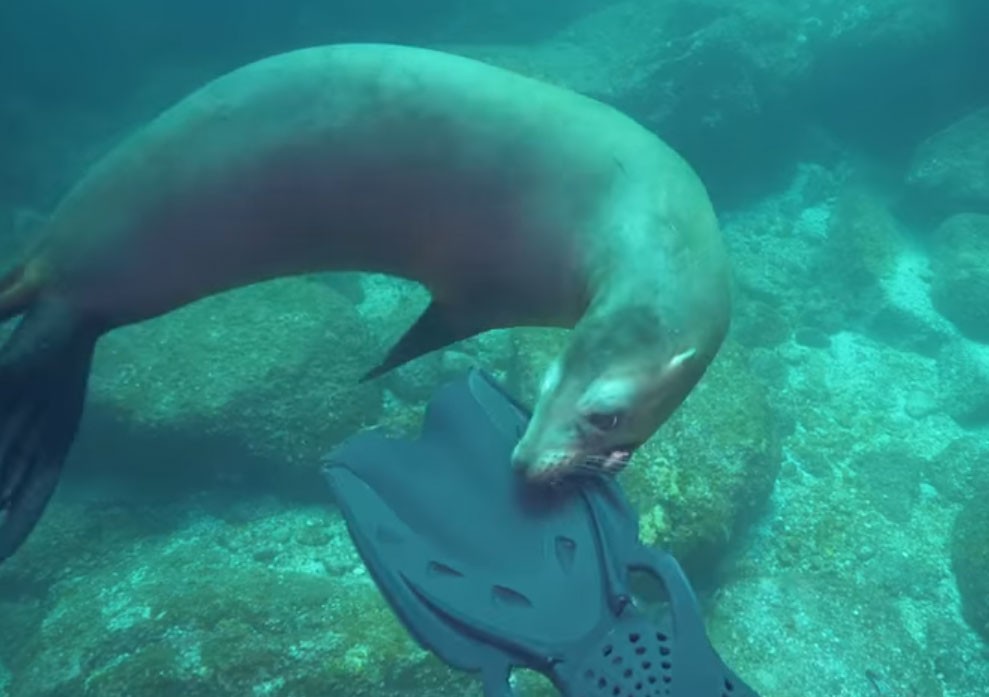 А в прошлом сезоне Пол, ныряя в Мексике, привлек внимание калифорнийского морского льва (лат. Zalophus californianus): заинтересовавшись ластами водолаза, ушастый тюлень приступил к их детальному изучению. Сначала была покусана передняя часть, затем лев попытался перевернуть их, а после добрался до области пяток дайвера.