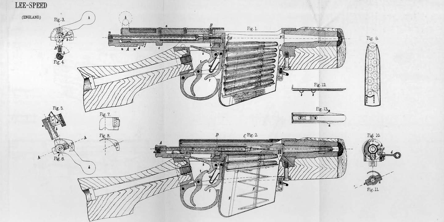 Настоящую же известность получила принятая на вооружение в Англии в 1888 году и служившая до конца 1950-х винтовка системы Ли разных версий, имевшая отъёмный магазин ёмкостью восемь или десять патронов, расположенных в шахматном порядке в два ряда. Отъёмным магазин, правда, был только на бумаге.