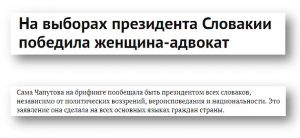 Минувшие выходные стали праздником для либеральных СМИ – на прошедших в Словакии выборах победила женщина. До этого момента совершенно никому не известная. Однако «независимые» медиа в один голос начали нахваливать новоиспеченного лидера – Зузанну Чапутову.