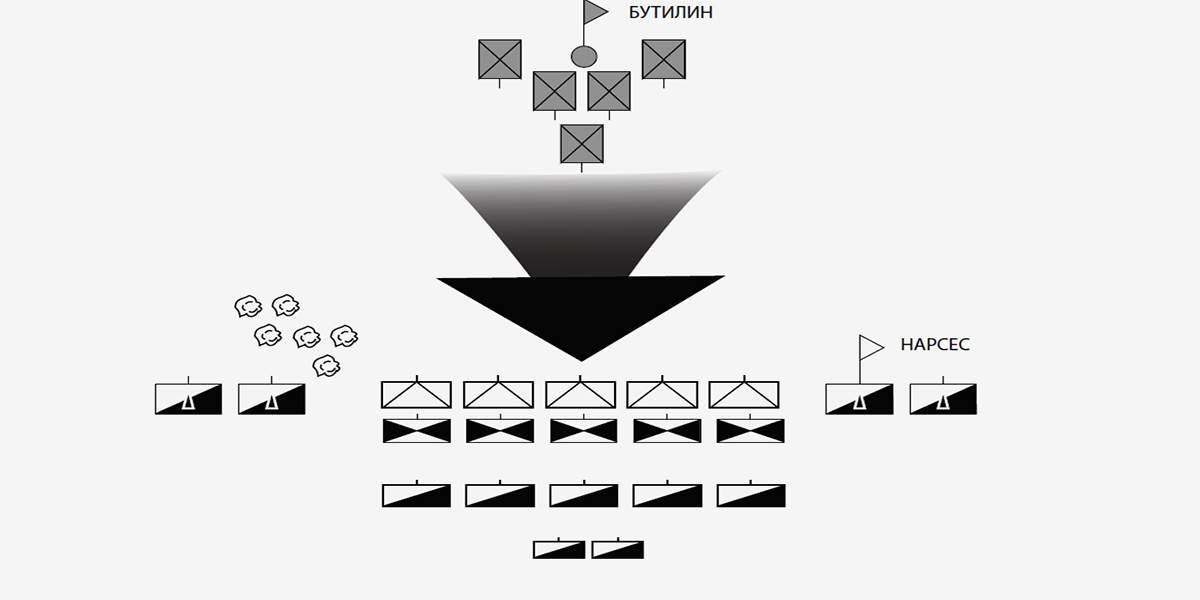 Сначала они показали балет «Тразименское озеро». Одно из варварских войск под командованием Леотара на обратном пути попало в засаду — и ромеи уничтожили его.