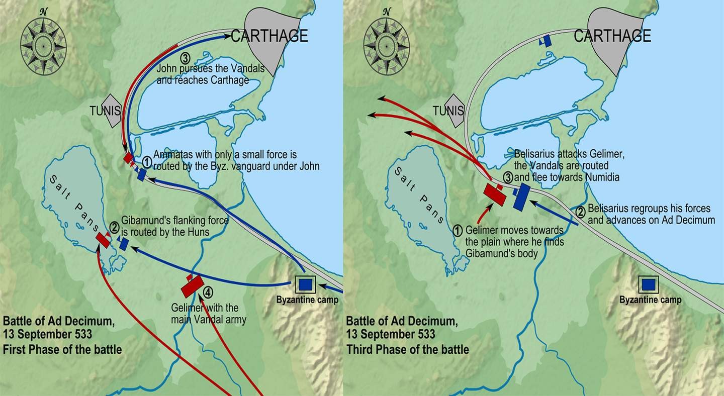 В битве при Ад Дециме («Десятимильный камень») недалеко от Карфагена фатальной для вандалов стала несогласованность действий их отрядов. Один из них, под командованием Аммата — брата короля Гелимера, преждевременно атаковал византийцев. В ходе боя Аммат получил смертельное ранение, а его воины обратились в бегство.