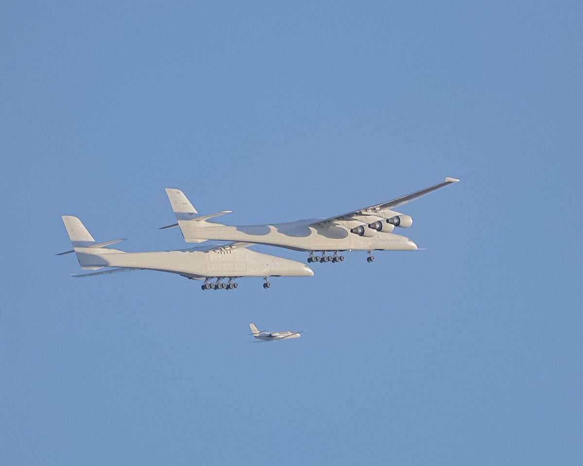 WOW. First flight of the worlds largest airplane. History is made. @Stratolaunch @NASASpaceflight #stratolaunch pic.twitter.com/e7x0omxvVc