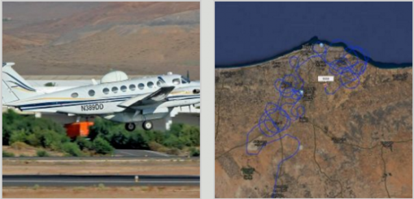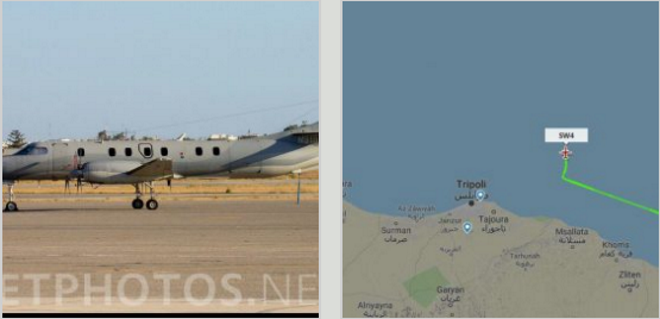 13.00. Разведывательные самолеты ряда стран совершают полеты вдоль ливийского побережья — это ВВС Египта, Франции, и других. В частности, это AWACS LX-N90451 НАТО, египетский C130 EGY1107 и французский Fairchild Swearingen Metroliner N919CK. На схеме представлена траектория его полета.
