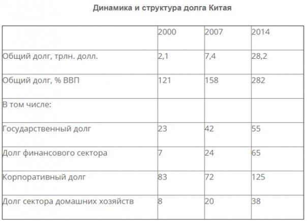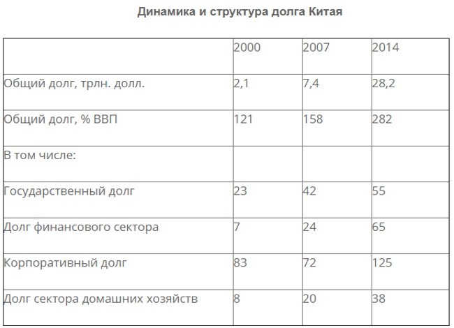 Вот основные цифры, характеризующие динамику и структуру китайского долга.