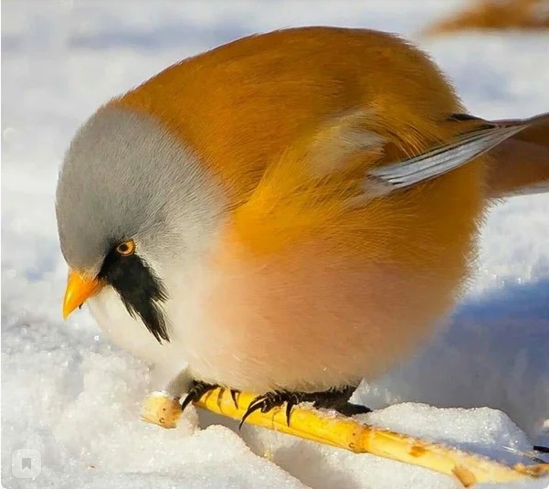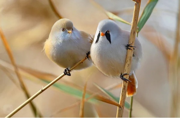 Как вы уже поняли, усатую синицу назвали так из-за черных полосок под глазами у самцов. Вот до чего доводит мода на барбершопы. У девушек-синиц таких полосок нет, да и оперение у дам более тусклое.