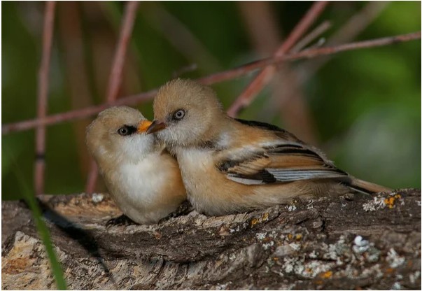Кстати, этих птиц можно легко держать дома. Им подходит самая простая зерновая диета, но иногда надо и насекомых подкинуть. Главное — не заводите одну птичку. Если решились, то сразу две. Одиночество усатые синицы не переносят. Живут 6-8 лет.
