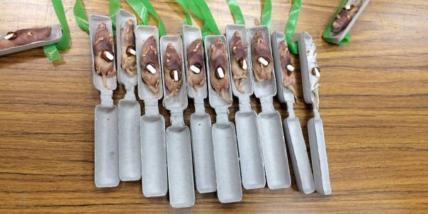 Бедолаг-грызунов снабдили парашютиками из бумаги и картонок, чтобы они застревали в ветках и быстрее обнаруживались бойгами. А в некоторых ещё и засунули радиодатчики для контроля успешности коварного плана.