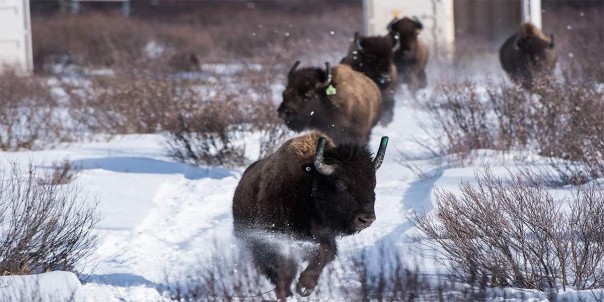 На месте животных выпустили в большой загон. Позже их собираются отправить на вольные хлеба и довести популяцию до сотен особей. Когда-то в этих местах бродили гигантские стада бизонов — но в годы великого отстрела в конце XIX века охотники истребили их практически полностью.