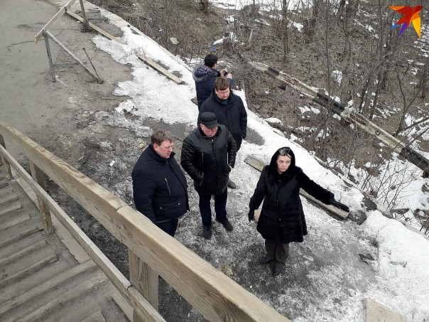 Депутат Берлинского городского парламента от парти АдГ Гуннар Линдеманн (слева) осматривает разрушенный мост между ЛНР и Украиной