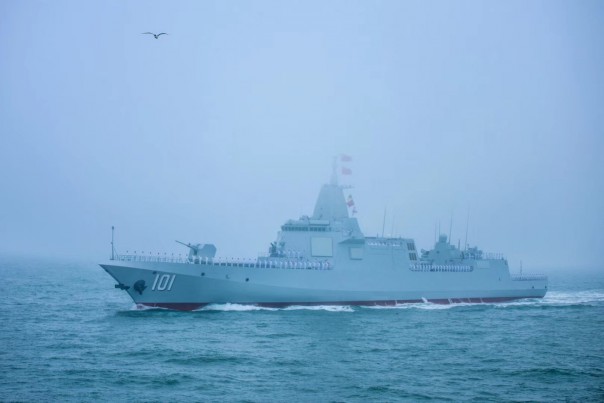 Первый из нового класса китайских эсминцев проекта 055 "Наньчан" впервые публично продемонстрировали на военно-морском параде по поводу 70-летия ВМФ НОАК, проведенном рядом с городом Циндао.
