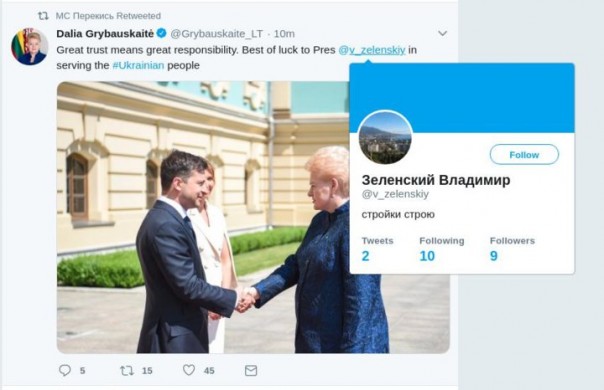 Президент Литвы попробовала поздравить Владимира Зеленского в Twitter, но что-то пошло не так