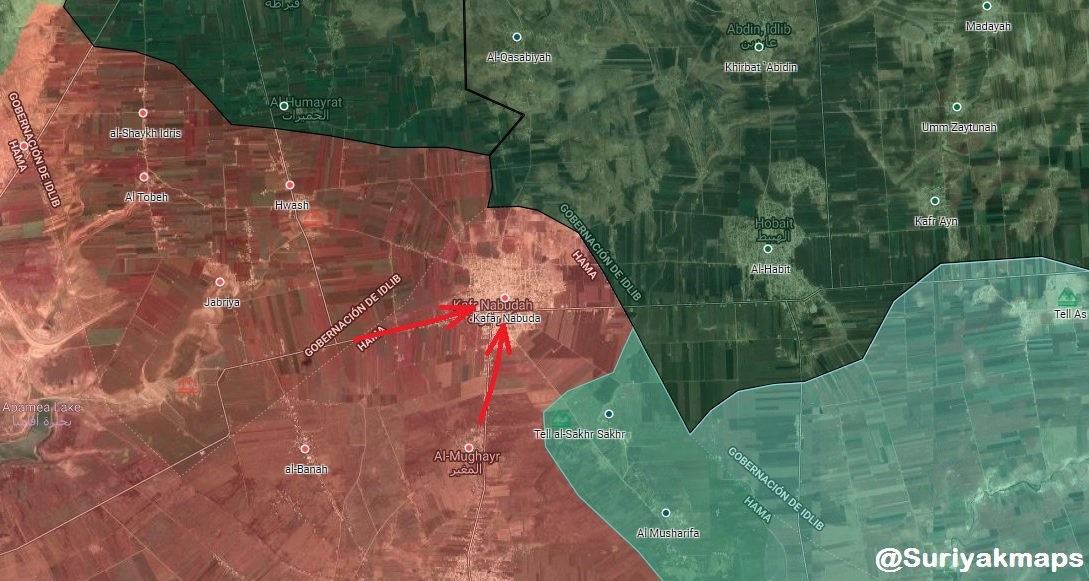 С середины мая за г. Кафр-Набуда идут ожесточенные бои. Правительственные войска освободили его в ходе масштабного наступления в рамках операции "Рассвет над Идлибом", потеряли в результате контратаки боевиков 21 мая и отбили снова 26-го.
