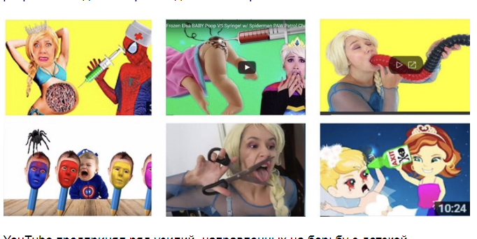 Впервые люди начали подозревать канал в наплевательстве на безопасность еще в 2017 году, когда под видом детских видеороликов распространялся порнографический контент с разнообразными отклонениями. Явление назвали в честь героини мультфильма «Холодное сердце» Эльзы – Эльзагейт. Сам же «Ютуб» никак не реагировал на происходящее. Через алгоритмы YouTube Kids педофилы проталкивали свои ролики в детское приложение.