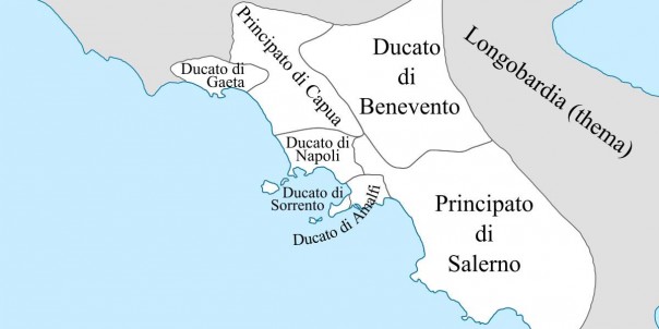 Неаполем правил герцог Сергий I, первый независимый его правитель. Этот ещё недавно не слишком значимый феодал оказался у руля Неаполя почти случайно. До него герцогов-дуксов, а точнее магистров милитес, назначали или утверждали в Константинополе. Но его предшественник Андрей слишком запутался в политических играх — герцога убил посланник призванных на помощь франков.