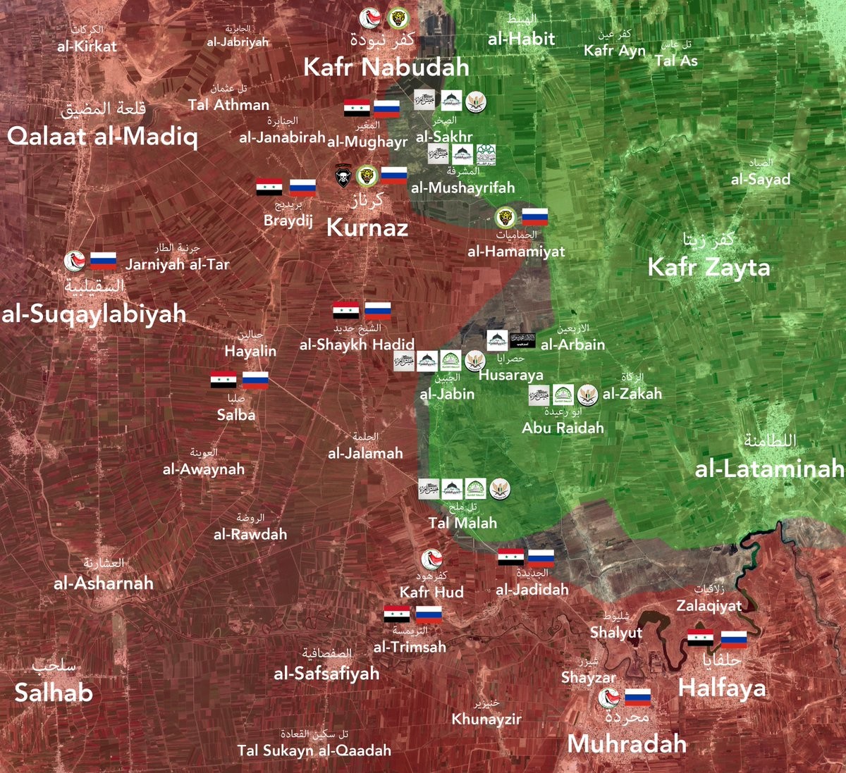 3-4 июля удары наносились по тыловой инфраструктуре альянса "Хайят Тахрир аш-Шам"* и протурецкого "Национального фронта освобождения" (НФО). Ракетно-бомбовые удары были нанесены по объектам боевиков в Хан Шейхуне, Кафр Небель (Кафранбель), Хабит, Кафр Зита, Латамна, Хасс, Маар Тахрома, Кенсафра, Харама, Абидин, Ракая и Кафр Саджна. Исламистские источники сообщают о значительных разрушениях и жертвах среди гражданского населения.