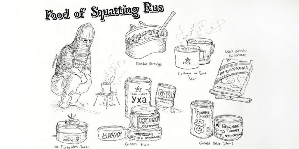О да, русичи-на-кортах и Автономная область… они основаны на популярных стереотипах из игр серии S.T.A.L.K.E.R. и интернет-мемов про squatting slavs (гопников. — Прим. автора). Я обнаружил, что просто нарисовать человека в средневековых русских доспехах, сидящего на корточках, ещё не создаёт интересного персонажа.