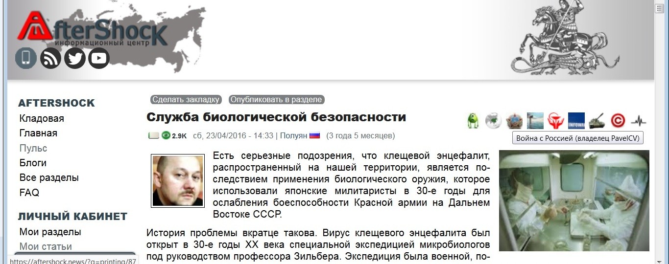 Меня такая озабоченность порадовала, поскольку уже много лет (первая публикация в 2003 году - https://www.pravda.ru/sport/40256-klesh/) я продвигаю идею общественного расследования о происхождении клещевого энцефалита.
