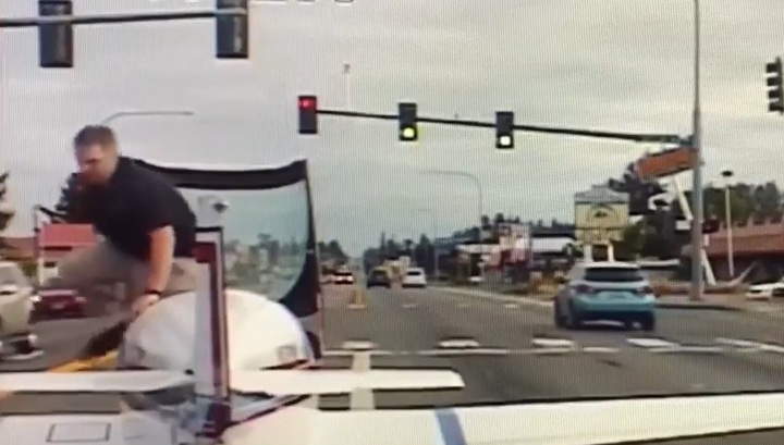 Регистратор, установленный в патрульном автомобиле полицейского из Паркленда, расположенного в штате Вашингтон на северо-западе США, запечатлел вынужденную посадку легкомоторного самолета.