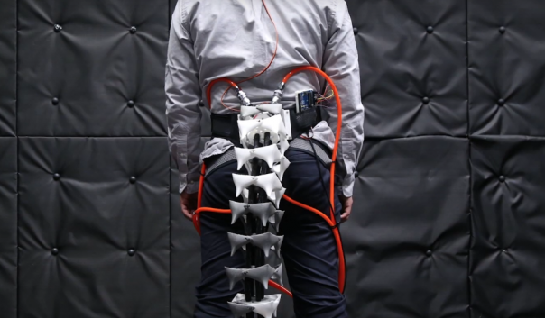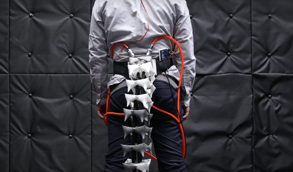 В основе каждого сустава хвоста лежат четыре защитные пластины и один искусственный позвонок. Пластины соединены эластичными шнурами, а позвонки прикреплены к ним пружинами. Встроенные датчики считывают движения тела человека и распределение веса, и в результате устройство, состоящее из серии позвонков и четырех пневматических мышц, позволяет хвосту синхронизироваться относительно положения тела.