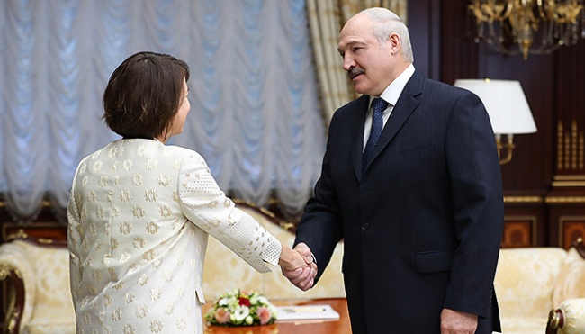 «Наша политика в отношении Белоруссии — поддерживать ее независимость и суверенитет. И еще мне кажется, что Белоруссии надо быстрее двигаться в вопросах реформирования экономики и институтов», — заявляла она в интервью одному из белорусских оппозиционных изданий.