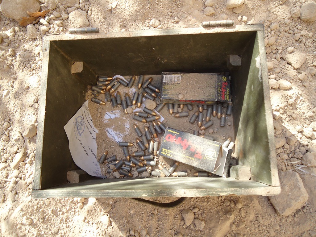 16.08.19 г. в здании, расположенном в г. Меядин провинции Дейр-эз-Зор, обнаружен схрон боевиков НВФ. Найденные боеприпасы и подрывная машинка иностранного производства переданы в Мухабарат. Здание уничтожено методом подрыва.