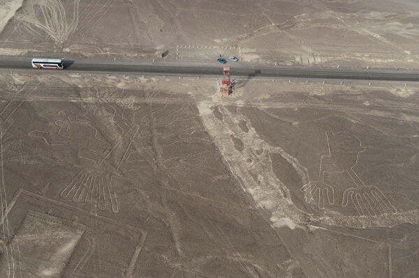 Цивилизация наступает на геоглифы Наска. Рядом с ними проходит Панамериканское шоссе,