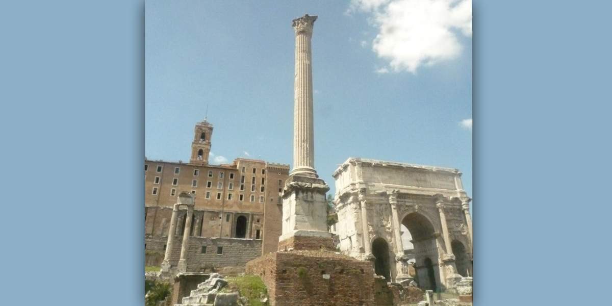 Эту колонну, основательно потрёпанную, автор этих строк запечатлел во время своей поездки в Италию в 2014 году