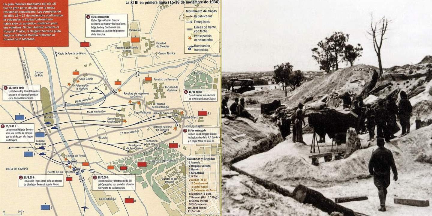 Пятнадцатого ноября генерал Хосе Варела, смяв анархистов, переправился через Французский мост в университетский городок. Судьба столицы вновь оказалась на волоске. Марокканцы ворвались в город, но их авангард был уничтожен. Поскольку мост, связывавший два берега, простреливался, националисты подвозили боеприпасы на танкетках. Ожесточённые бои шли в течение 15–23 ноября.