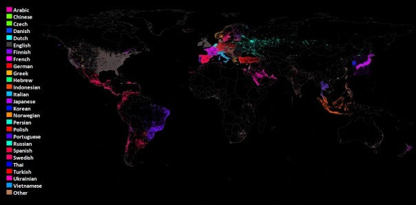 Мировая карта языков твиттера. Обратите внимание на Украину.