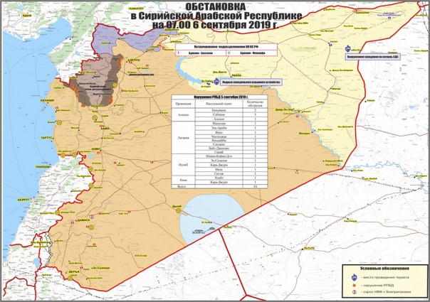 Сирия, 6 сентября. Курды подозреваются в организации взрыва у штаб-квартиры протурецких боевиков в Африне. Коалиция США направила конвой с военной техникой и оборудованием на позиции курдов в Хасаке. ВВС Сирии провели разведывательные вылеты в Идлибе, сообщает военный источник Федерального агентства новостей (ФАН) в Сирии Ахмад Марзук (Ahmad Marzouq).