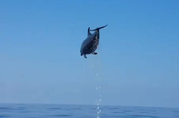 Мама-дельфин благодарит рыбаков за спасение детеныша