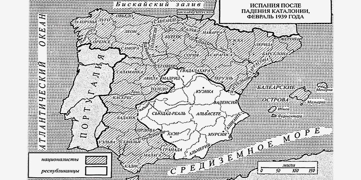 Потеря Каталонии стала тяжёлым ударом. Какие были перспективы продолжения борьбы? Республика всё ещё занимала треть территории Испании, где проживало около 9 млн человек. Под её контролем оставался ряд крупных городов.