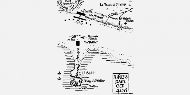Итак, пять кораблей покинули Ниньо, но тут же подошли шесть кораблей французских корсаров братьев Либускье. Они присоединились к кастильцам и высадили большой десант (около двух тысяч человек) на Джерси. Там их атаковали три тысячи английских пехотинцев и 200 всадников. Из двух тысяч франко-испанцев около 300 человек составляли рыцари с конями.