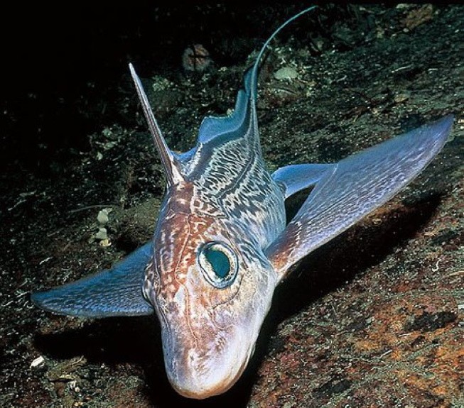 Это дальняя родственница акулы, живущая на планете как минимум 300 млн. лет. Рыба предпочитает большую глубину и крайне редко попадается в сети или на крючок. Огромные глаза химере нужны, чтобы лучше видеть в темноте под толщей воды.