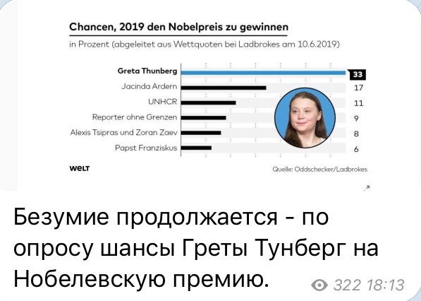 Депутаты шведского риксдага от Левой партии и депутаты норвежского стортинга от Социалистической левой партии (обе структуры объединяют экосоциалистов, неомарксистов, троцкистов, ЛГБТ-активистов и радикальных феминисток) номинировали Грету Тунберг на Нобелевскую премию мира.