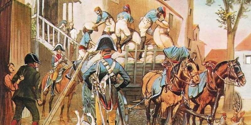 Ходила даже поговорка «бесполезный, как ассигнат» — то есть как расписка фуражиров. Считалось, что снабженцы должны дать за конфискованный товар честную цену. Это тоже соблюдалось не всегда, хотя француз мог обжаловать произвол военных. Худшее начиналось за границей. Там армия чаще просто забирала всё, что считала нужным.