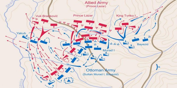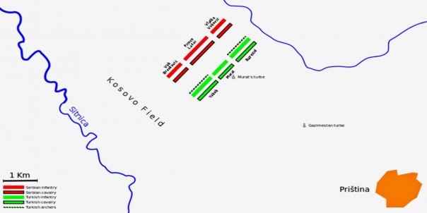 Нам известно, что битва на Косовом поле состоялась утром 15 июня (28 июня по новому стилю) 1389 года на равнине близ города Приштины, в месте схождения рек Ситница и Лаб. Турки превосходили своих оппонентов не только в численности, но и в слаженности действий. Центром османской армии командовал сам султан Мурад I, а флангами — его сыновья: справа стоял шехзаде Баязид, слева — старший брат, шехзаде Якуб.