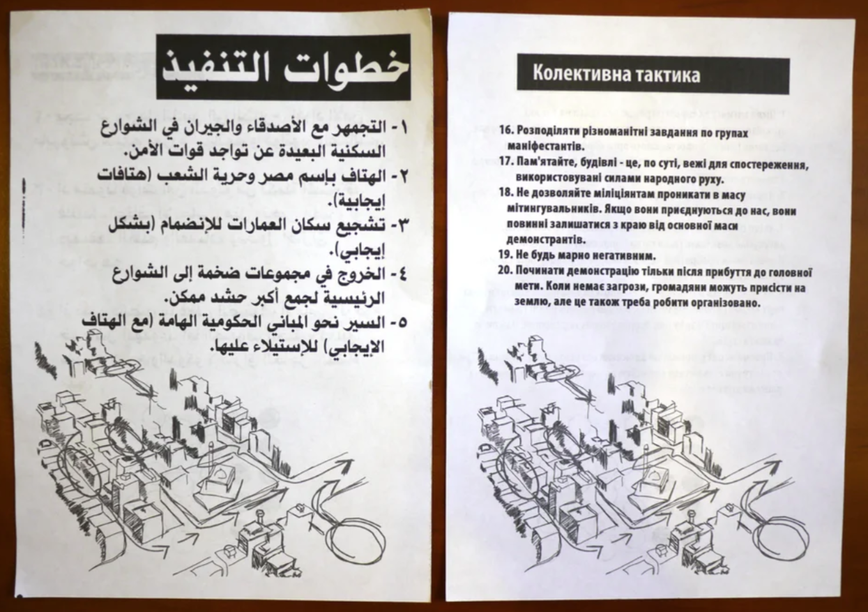 Когда в очередной раз слышу о том, что "это народ вышел свергать власть", то всё время становится интересно: а кто их научил скоординированной деятельности, как одеваться, что кричать, куда бежать. А для этого добрые дяди подготавливают методички, чтобы борец с "Злочинной владой" знал, что делать.
